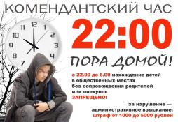 Напоминаем о "комендантском часе" для несовершеннолетних по Закону №111-ОЗ. Детям запрещено находиться в общественных местах без сопровождения взрослых с 22:00 до 06:00. Безопасность детей - наша общая ответственность.